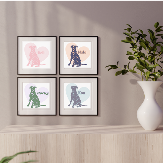 Labrador Retriever Dog Silhouette filled with Hearts, Customized to include pet name and quote, Great for a Dog Lover, Dog Artwork, and Dog Loss Tribute